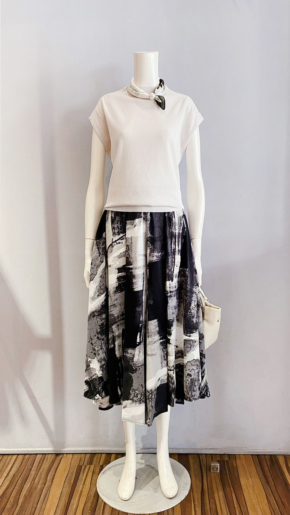 (衣) 小立領針衣 / (褲) 暈染褲裙