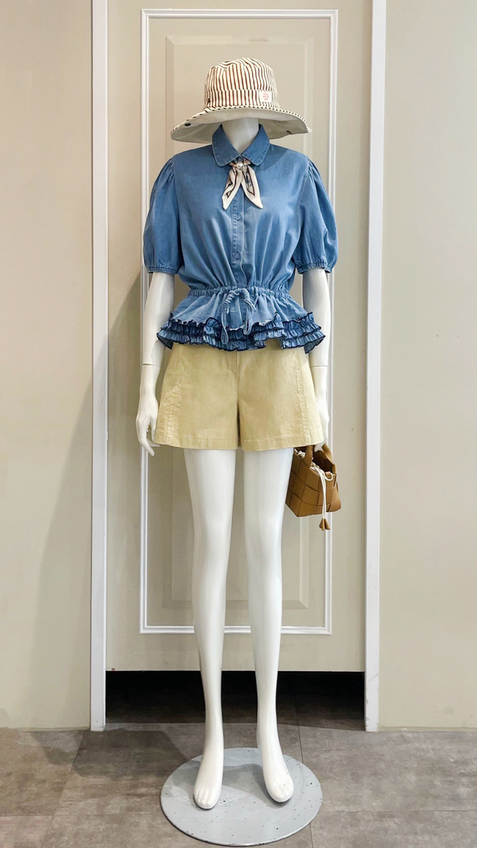 (衣) 荷葉綁腰牛仔衫 / (褲) 口袋木耳邊短褲
