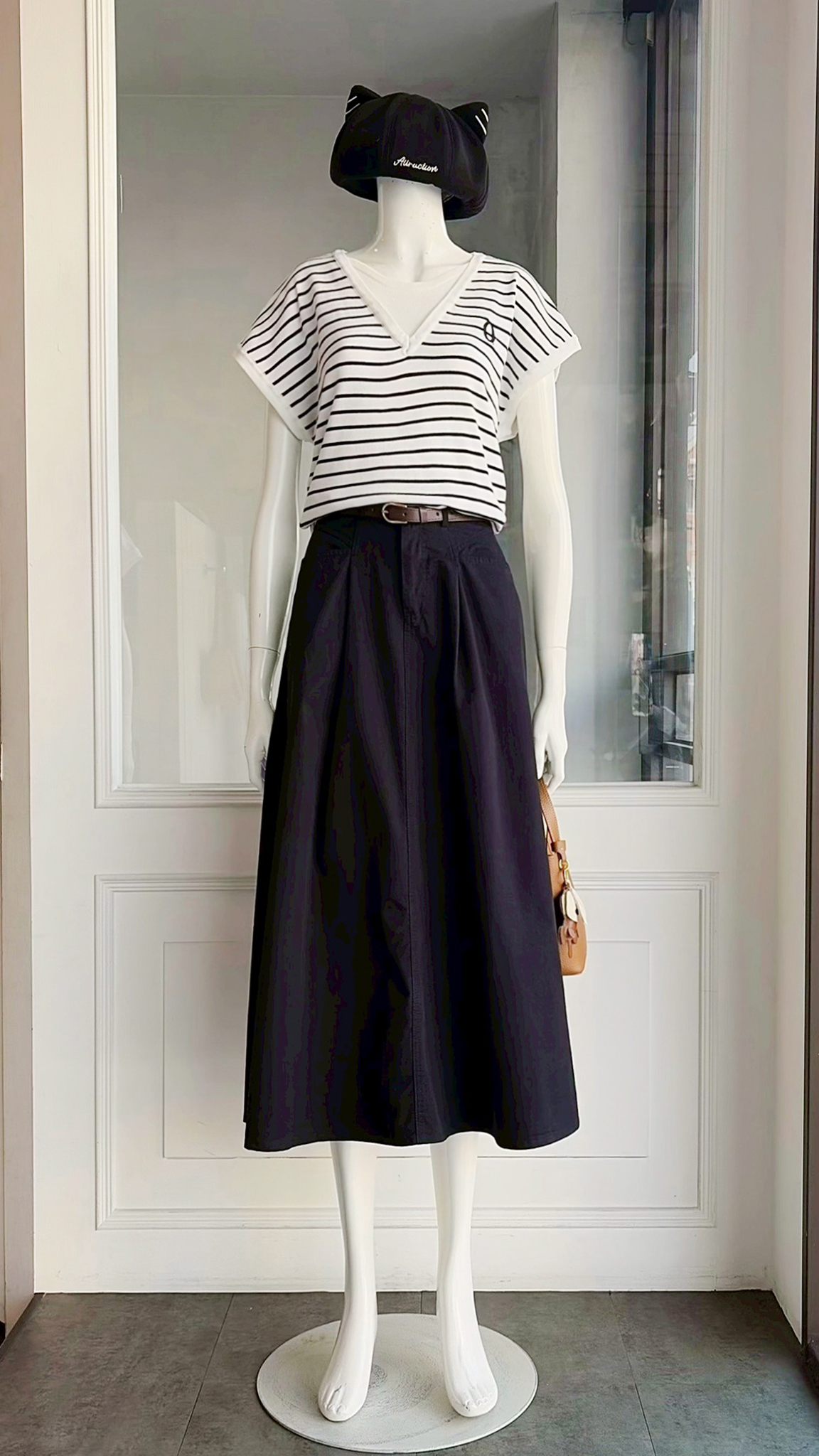 (衣) 條紋T / (裙) 一字口袋裙