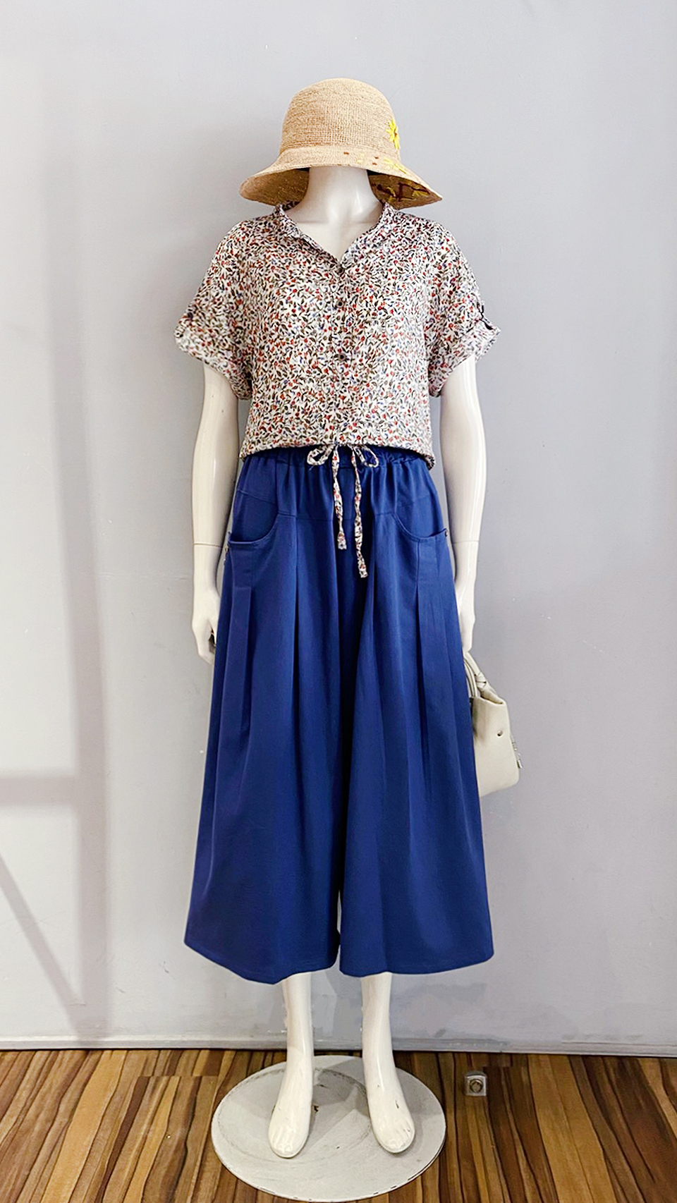 (衣) 三釦碎花衫 / (褲) 棉繩褲裙
