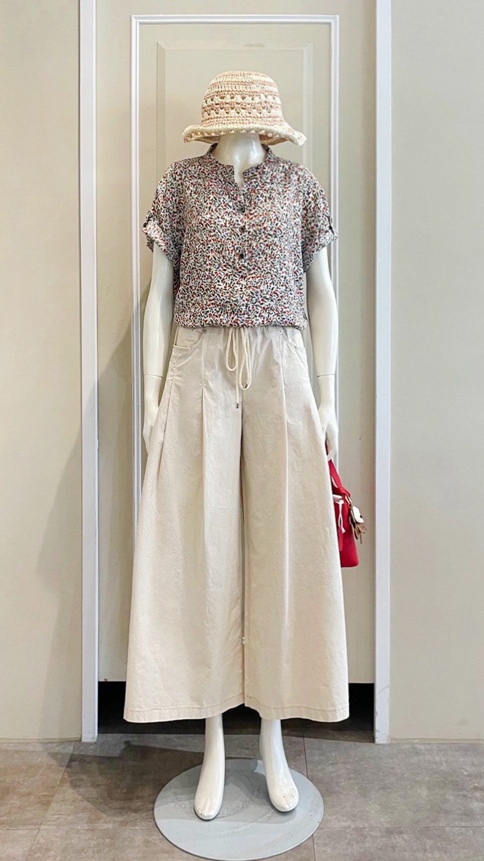 (衣) 三釦碎花衫 / (褲) 二褶排釦褲裙