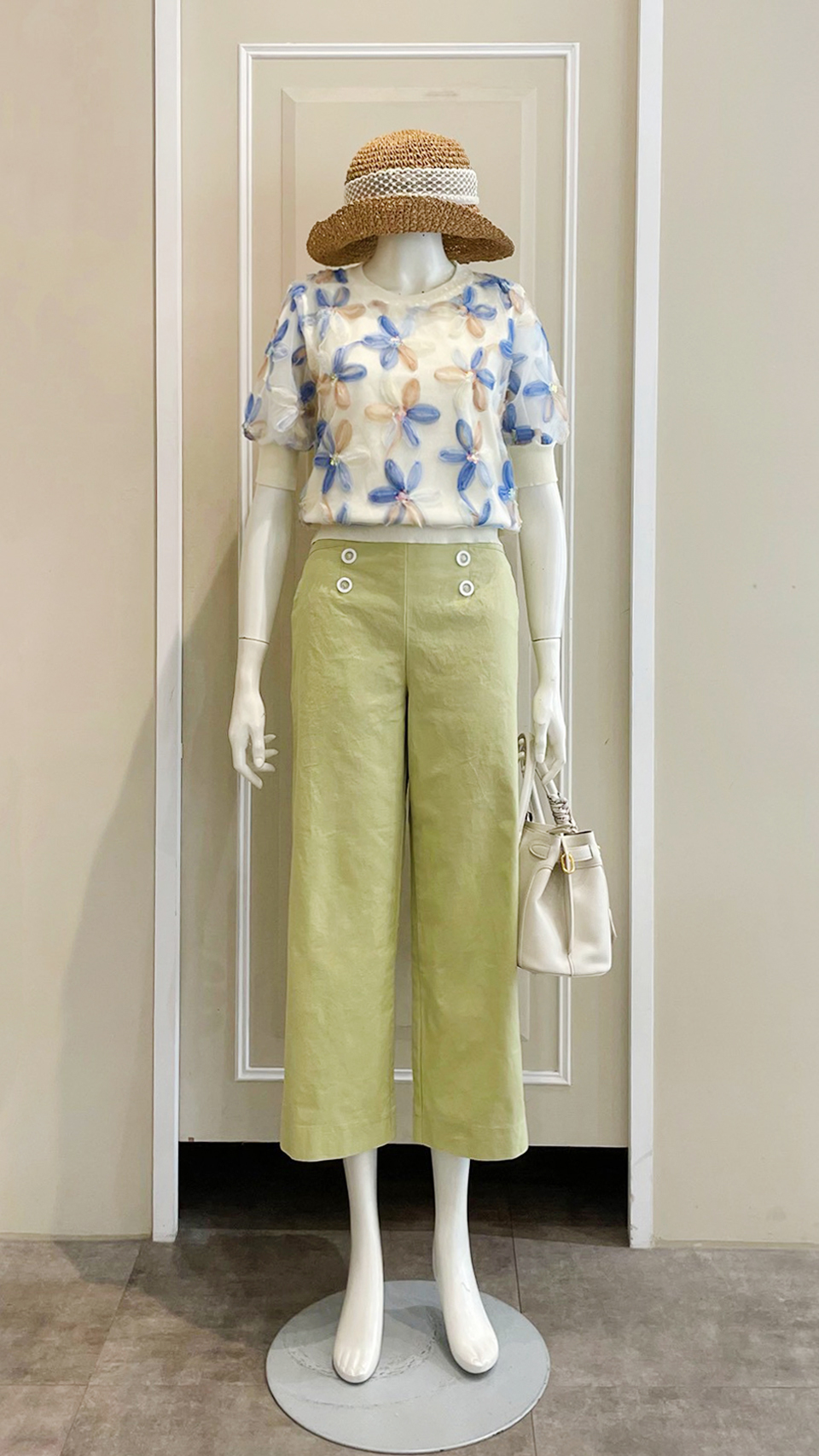 (衣) 彩色花衣 / (褲) 六釦直筒褲