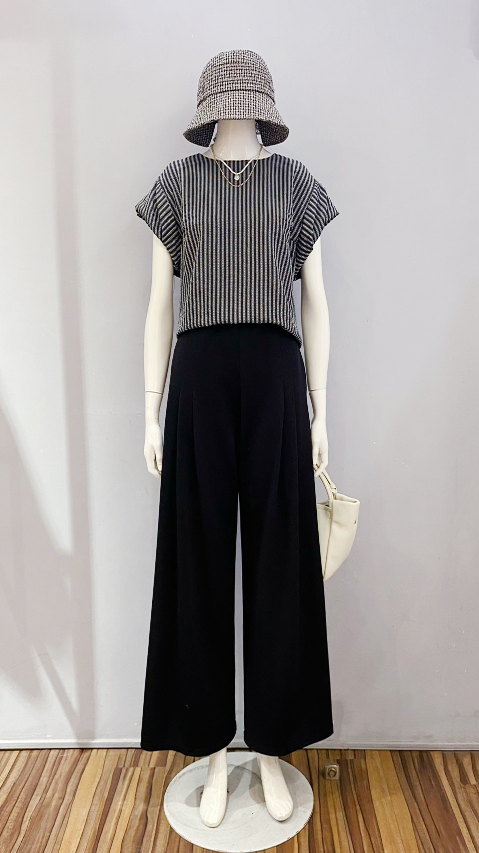 (衣) 造型袖直紋衣 / (褲) 二褶寬褲