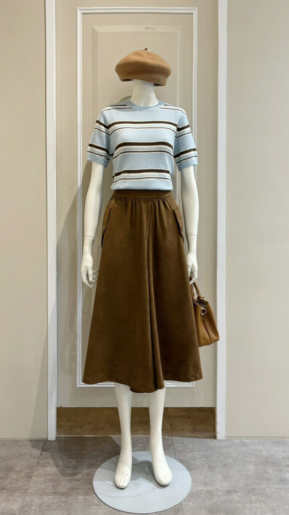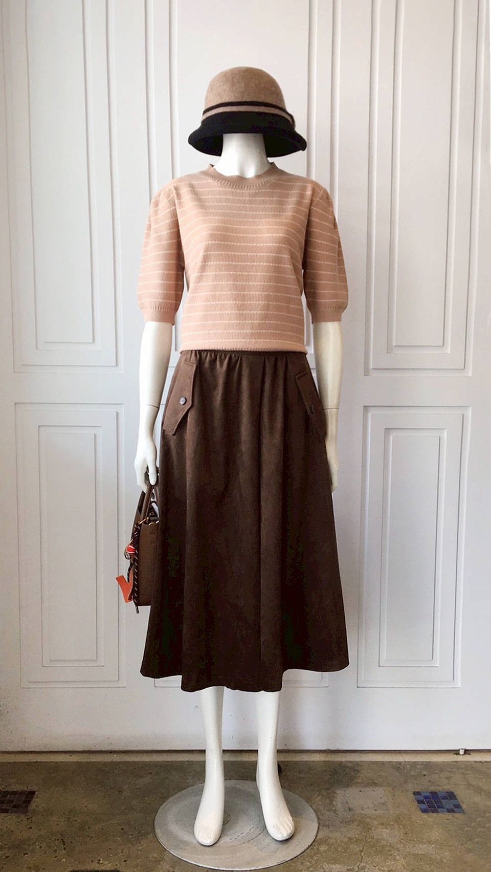 (衣) 氣質橫紋針衣 / (裙) 壓褶雙袋褲裙