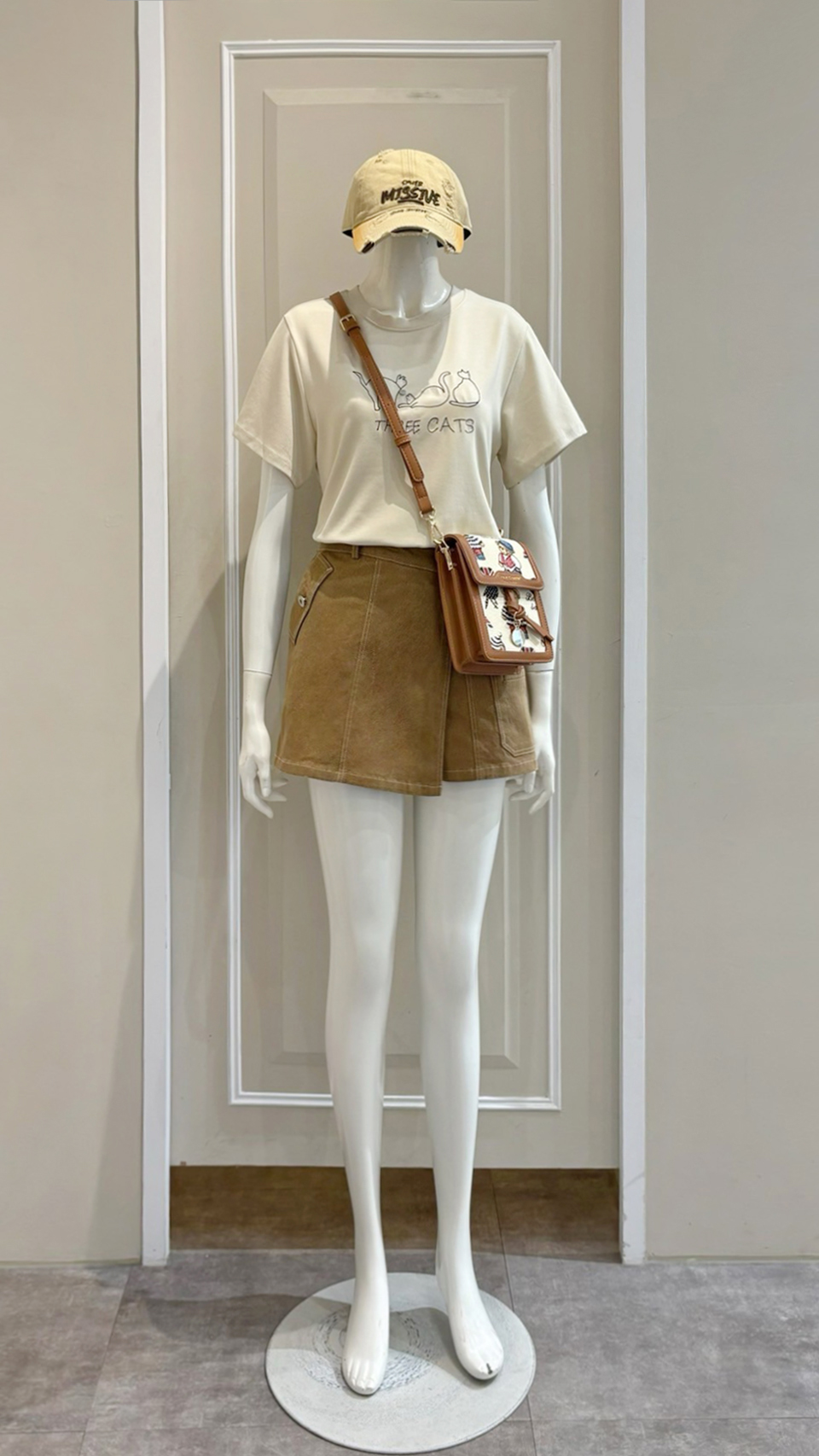 (衣) 三隻小貓T / (褲) 斜片釦短褲
