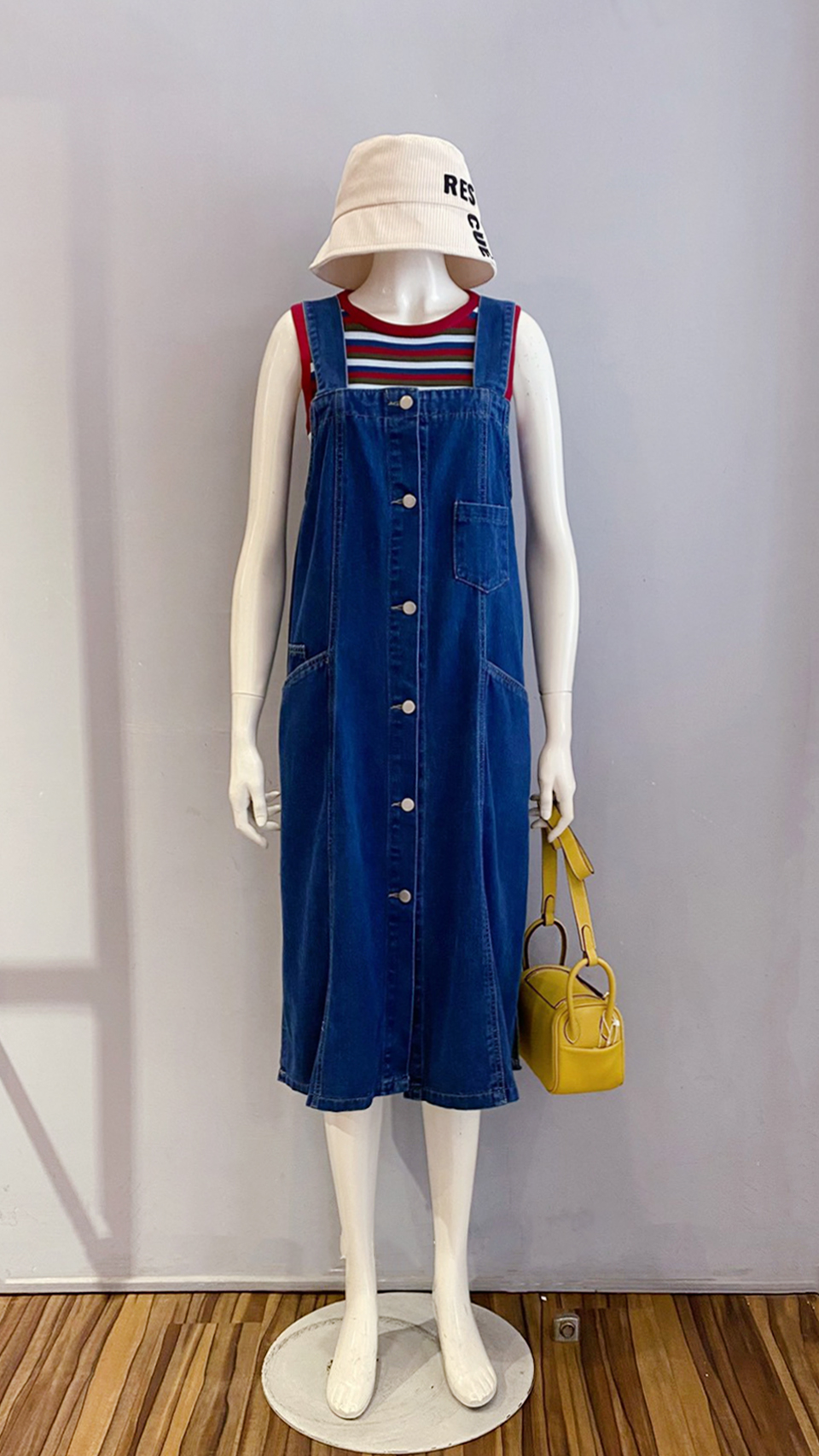 (背) 夏日配色條紋背 / (洋) 牛仔吊帶洋