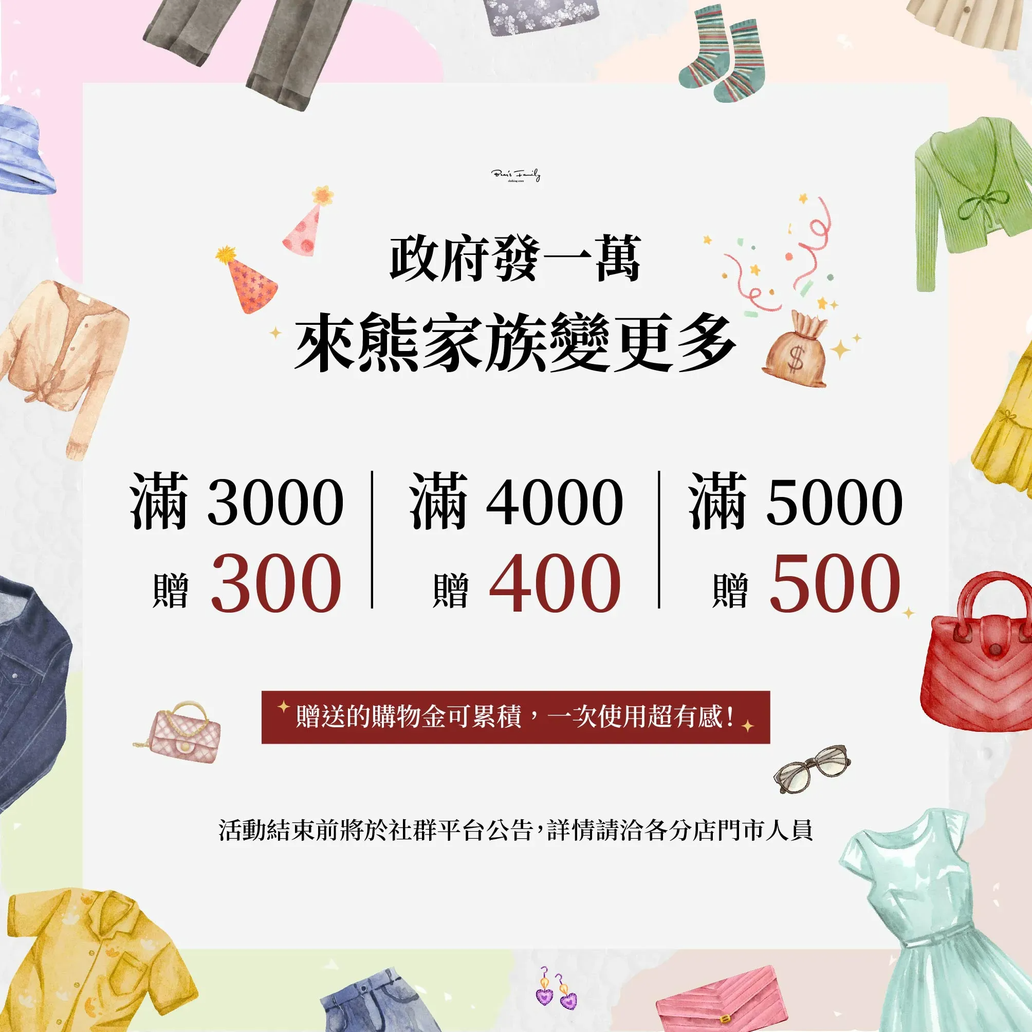 消費滿3千送3百、4千送4百購物金⋯以此類推,