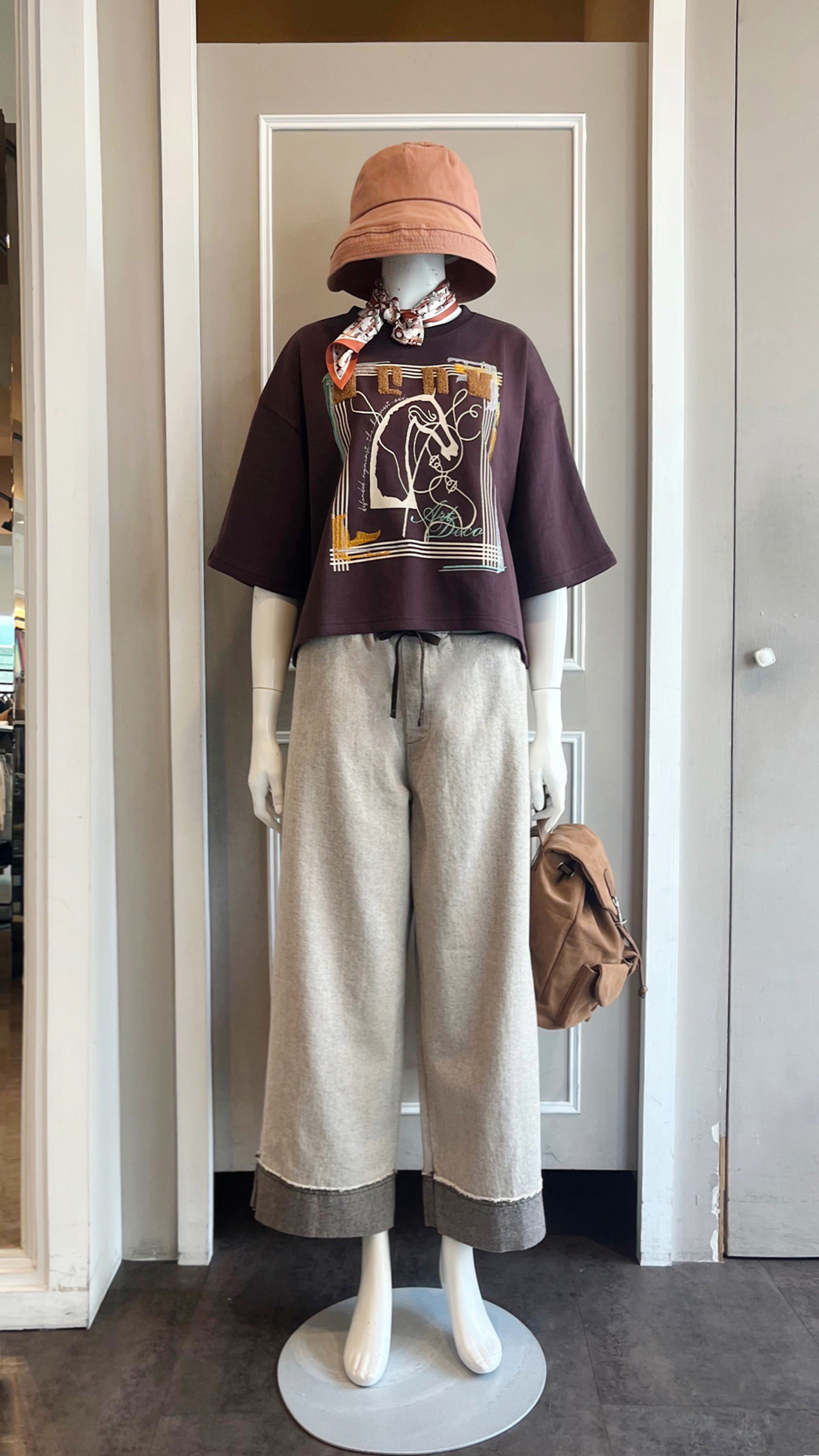 (衣) 抽象畫衣 / (褲) 配色褲角寬褲
