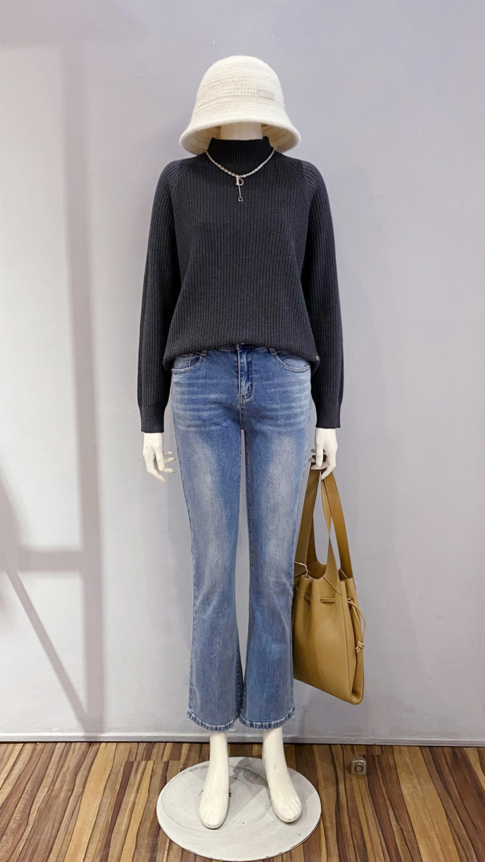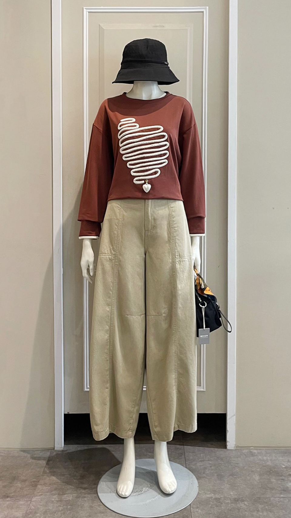 (衣) 毛線心飾T / (褲) 側鈕釦車線褲