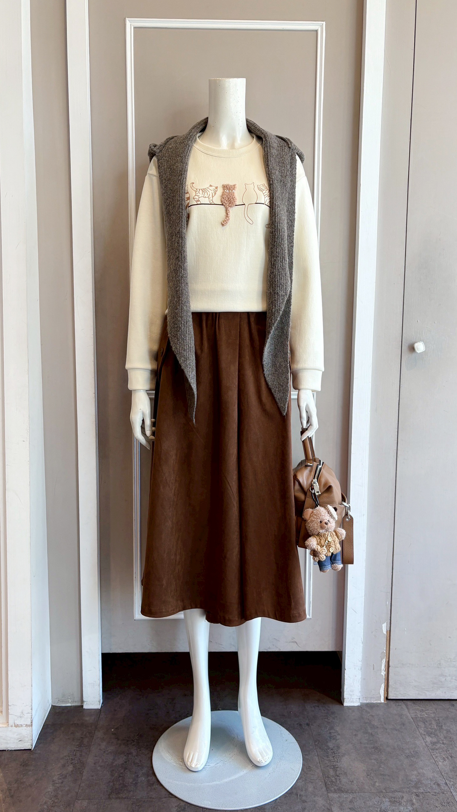 (衣) 背影貓T / (褲) 壓褶雙袋褲裙