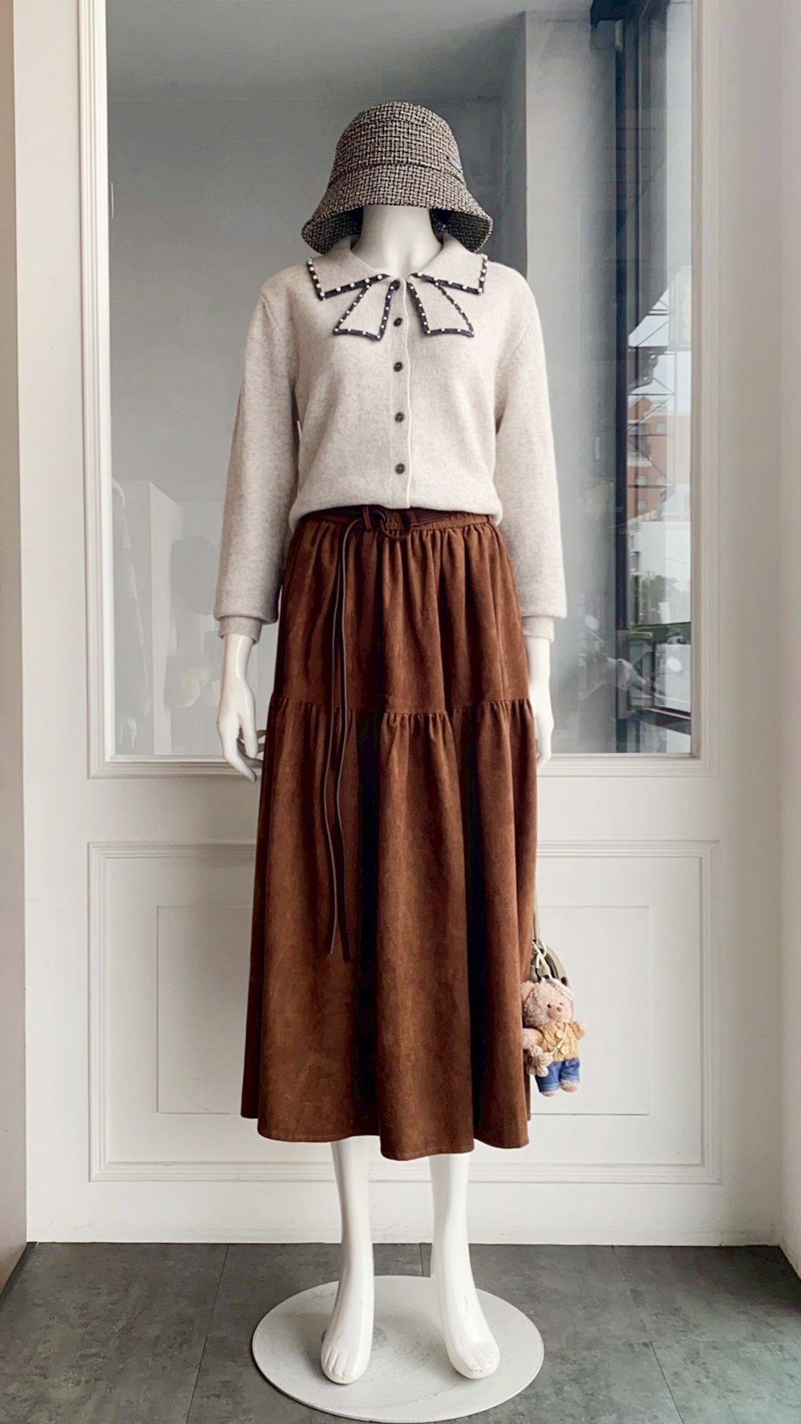(衣) 珍珠領結針衣 / (裙) 造型腰帶裙