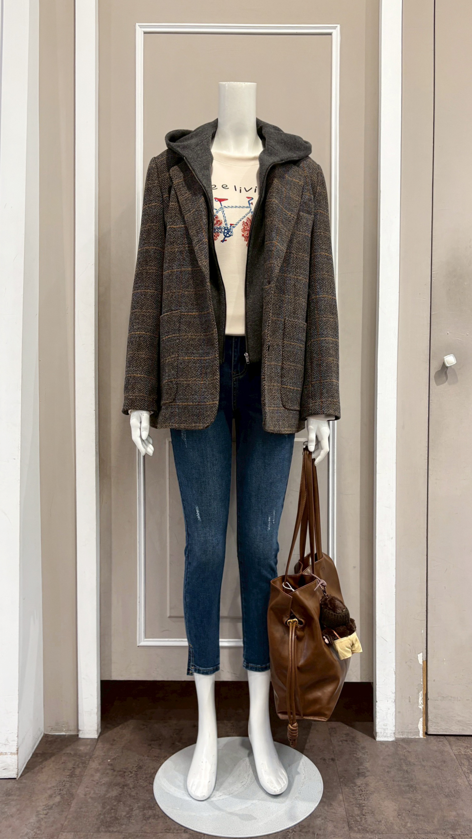 (衣) 英字腳踏車T / (外) 帽可拆格紋西外