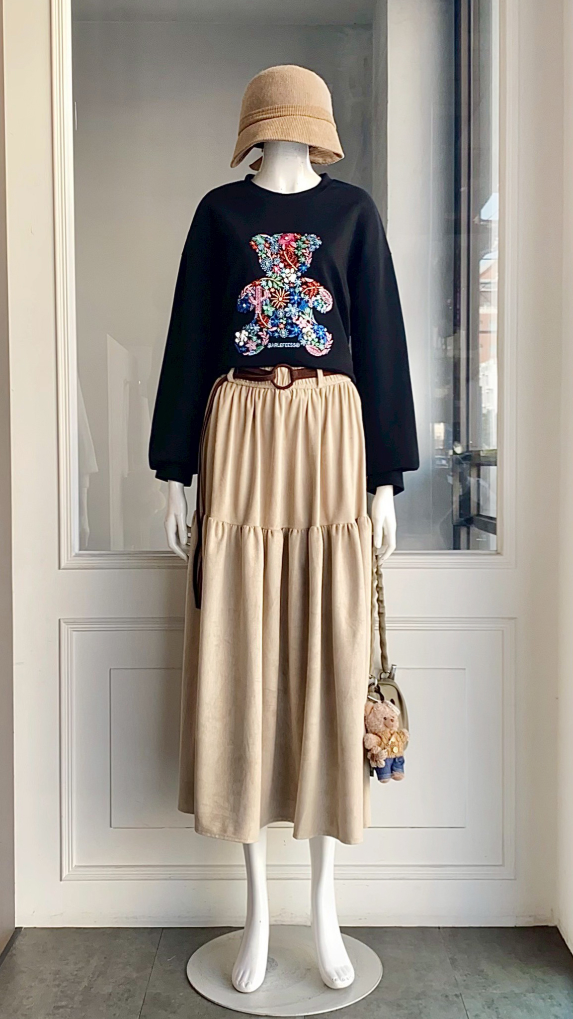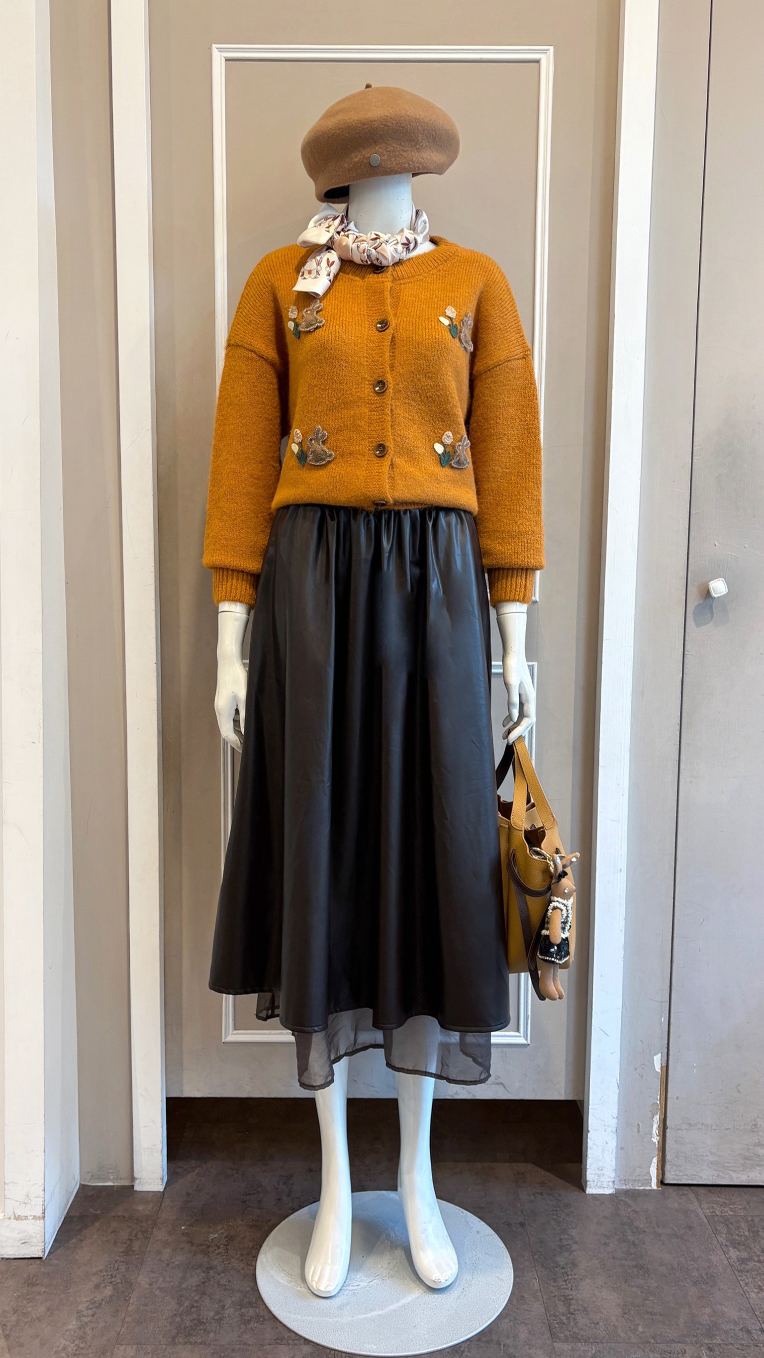 (外) 兔子花針外 / (裙) 下拼接皮裙