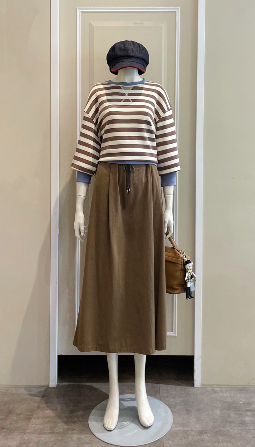 (衣) 領釦飾素針衣 / (裙) 大袋傘裙