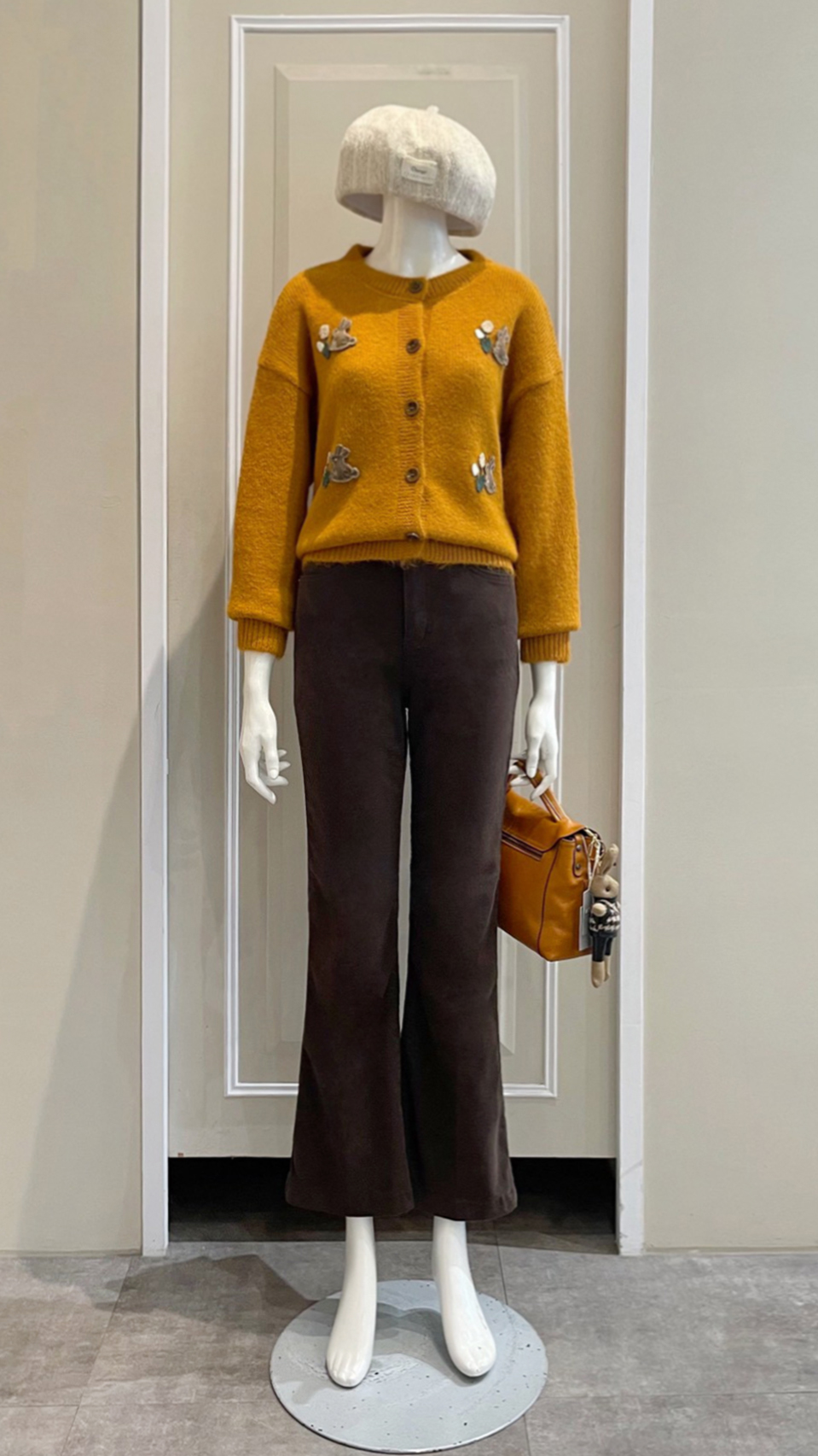 (外) 兔子花針外 / (褲) 薄刷毛喇叭褲