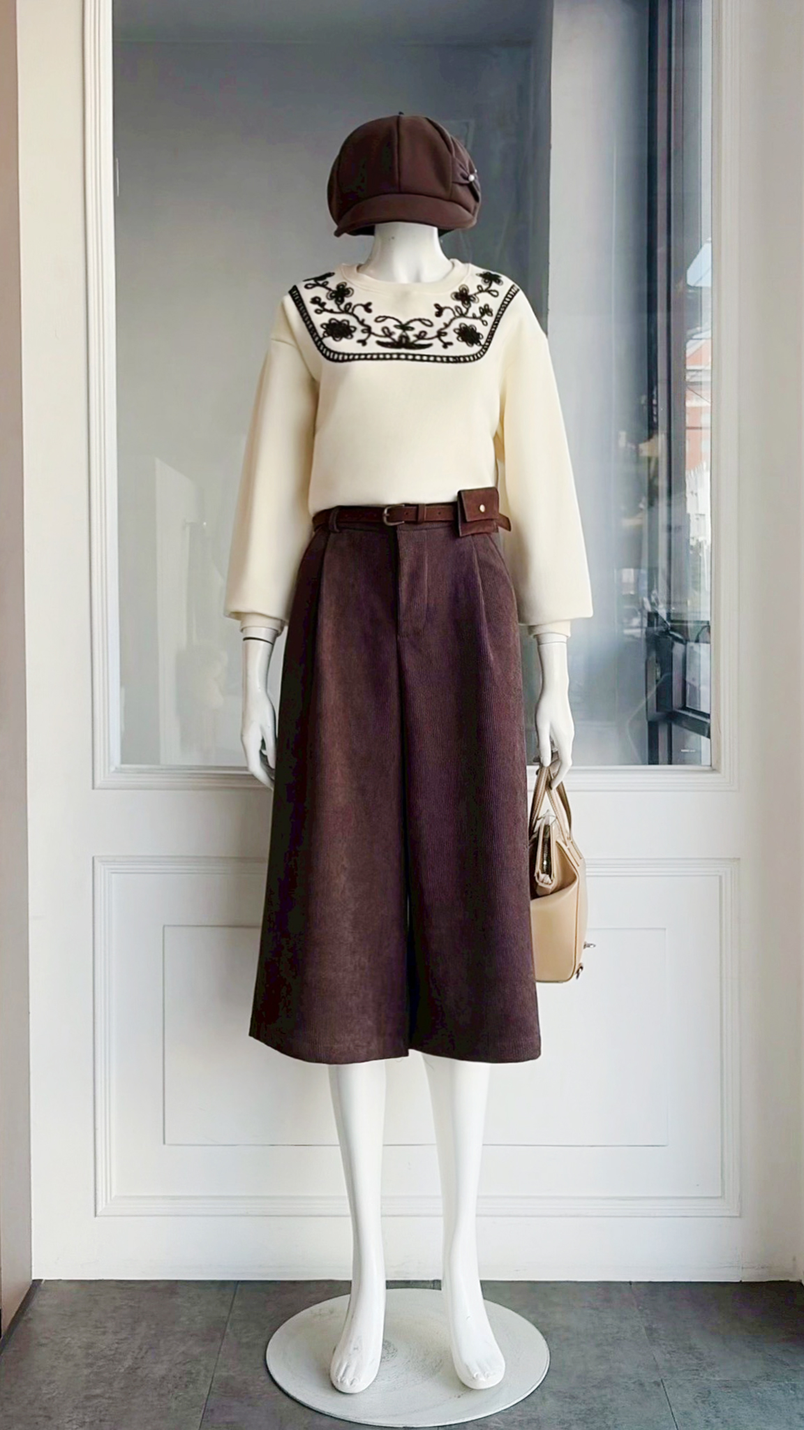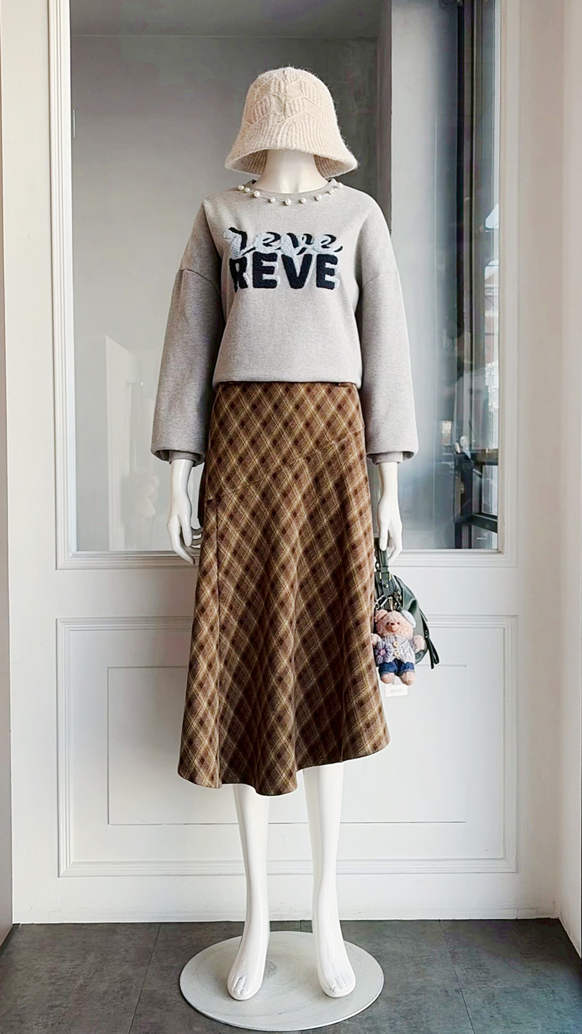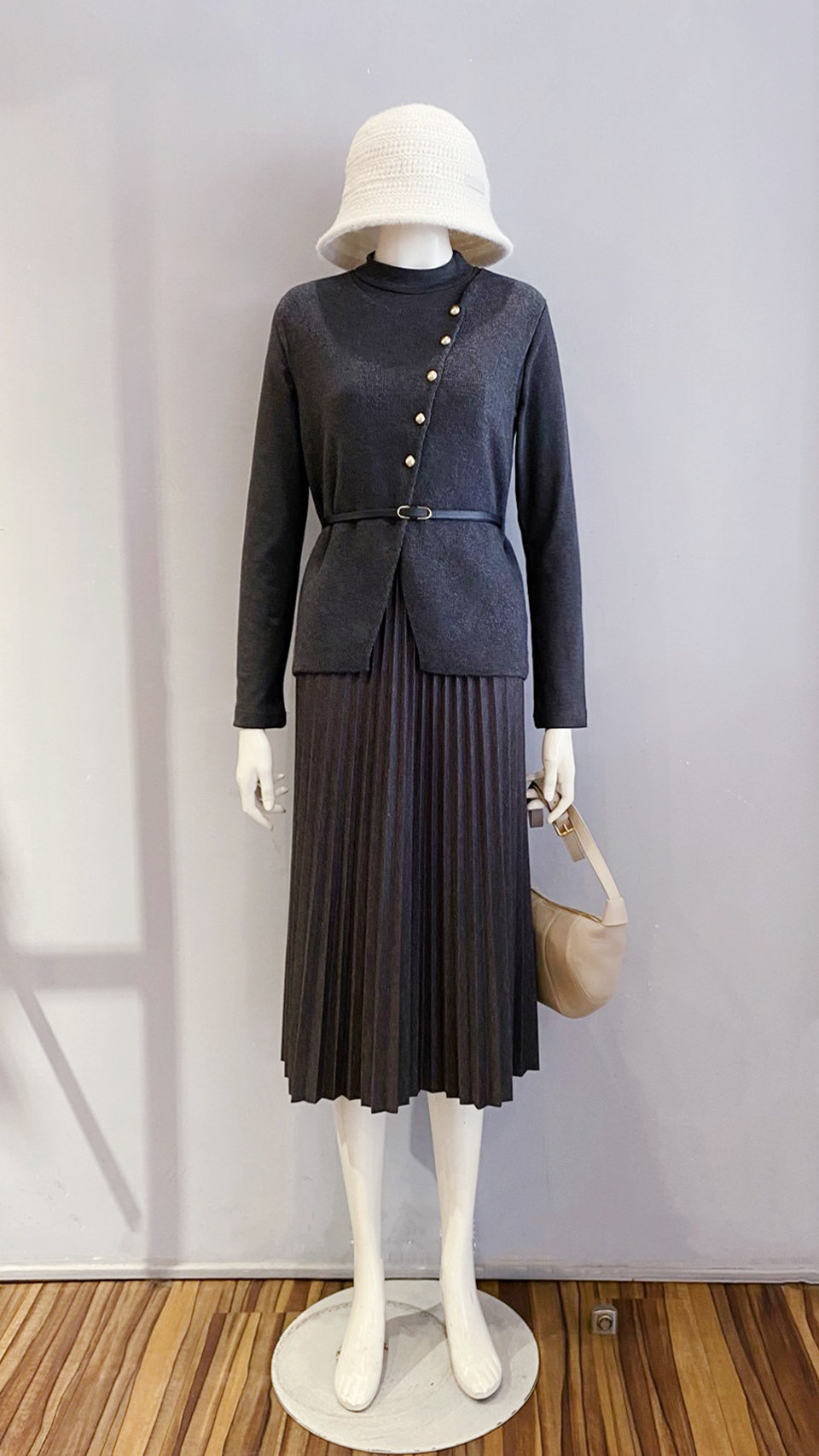 (衣) 毛英字珍珠衣 / (裙) 復古格皮帶裙