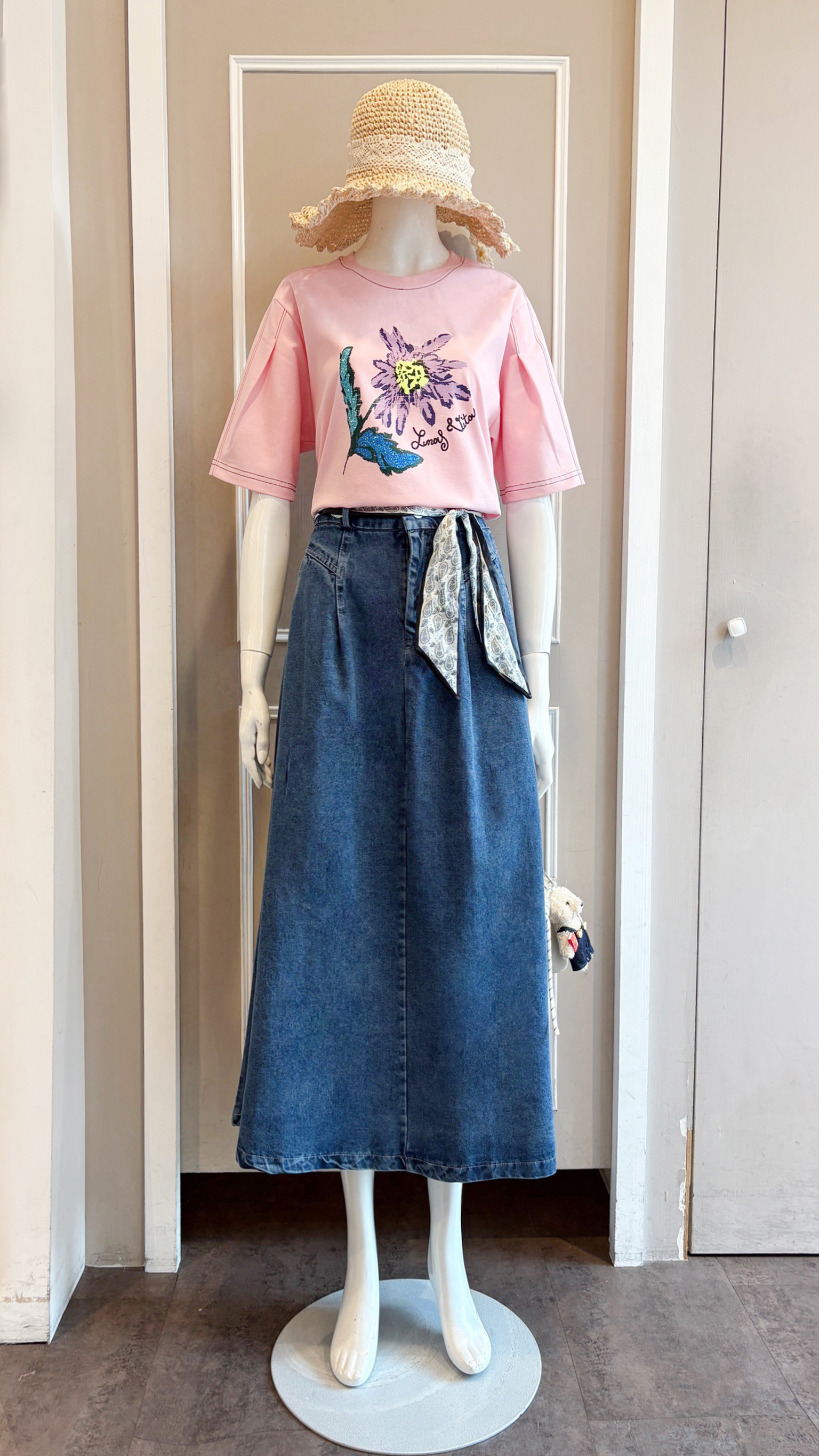 絲巾腰帶牛仔裙 B822603408070