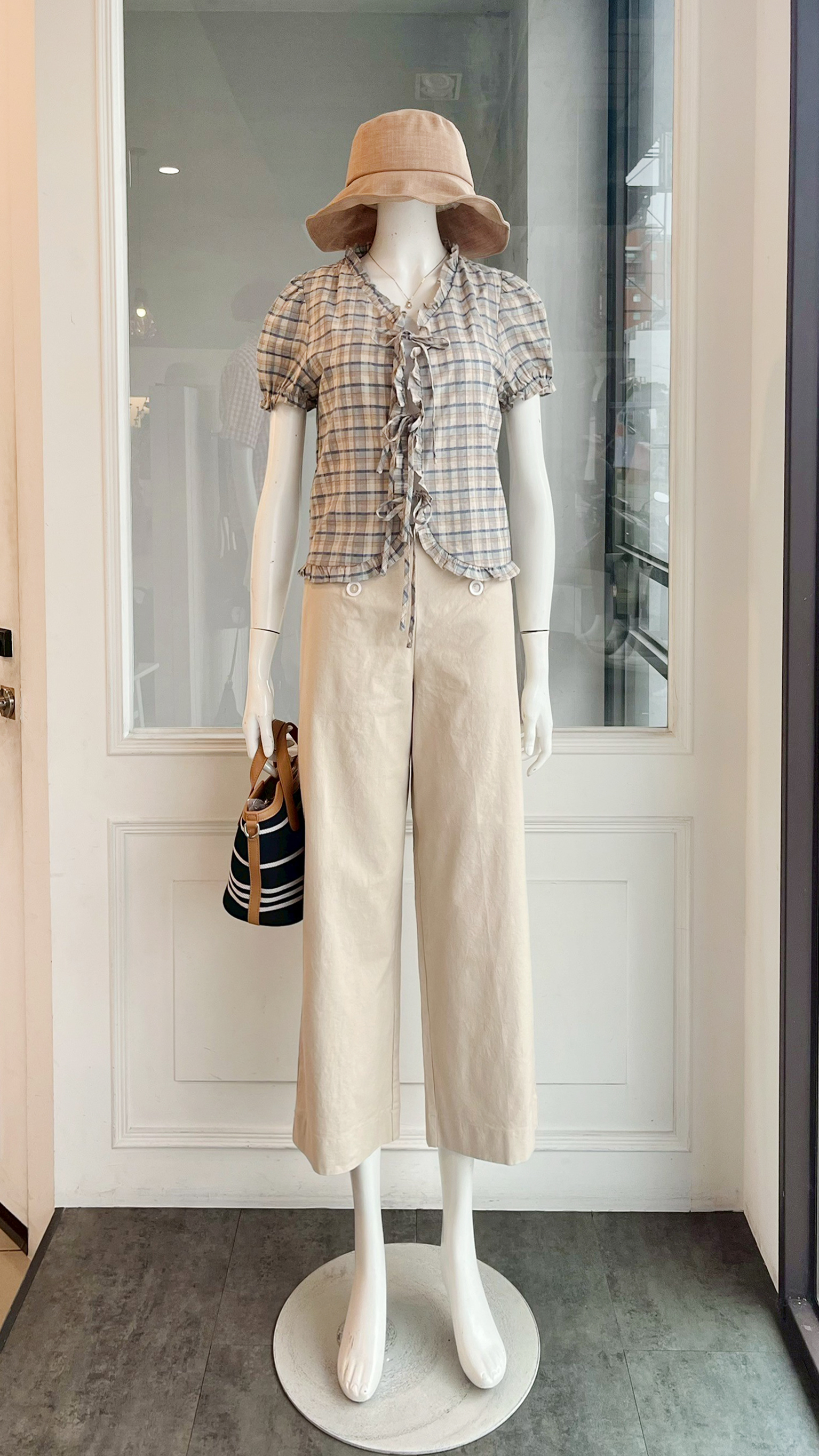 荷葉邊格紋綁結衫 B152604473015