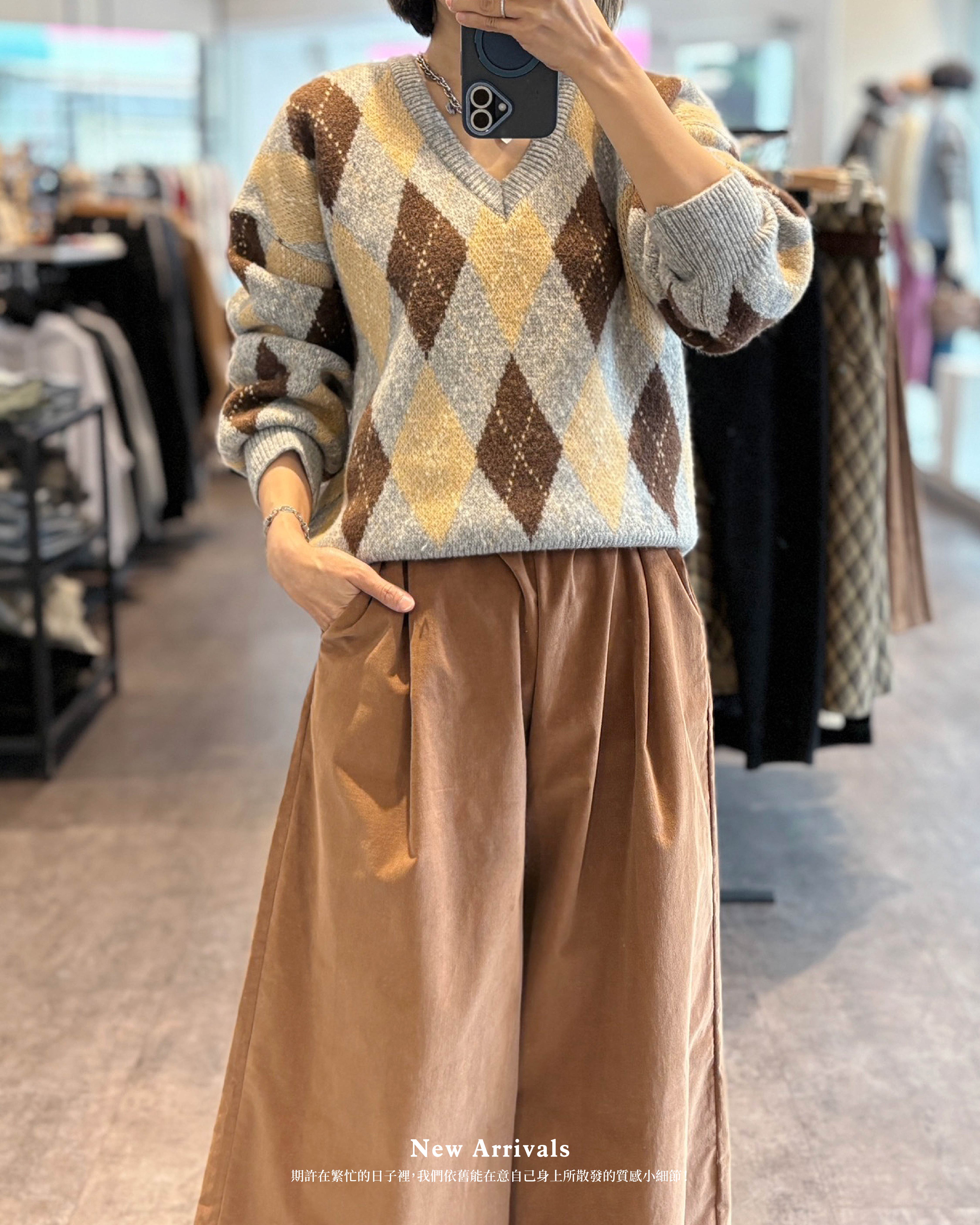 菱格V領針衣 B132601408016