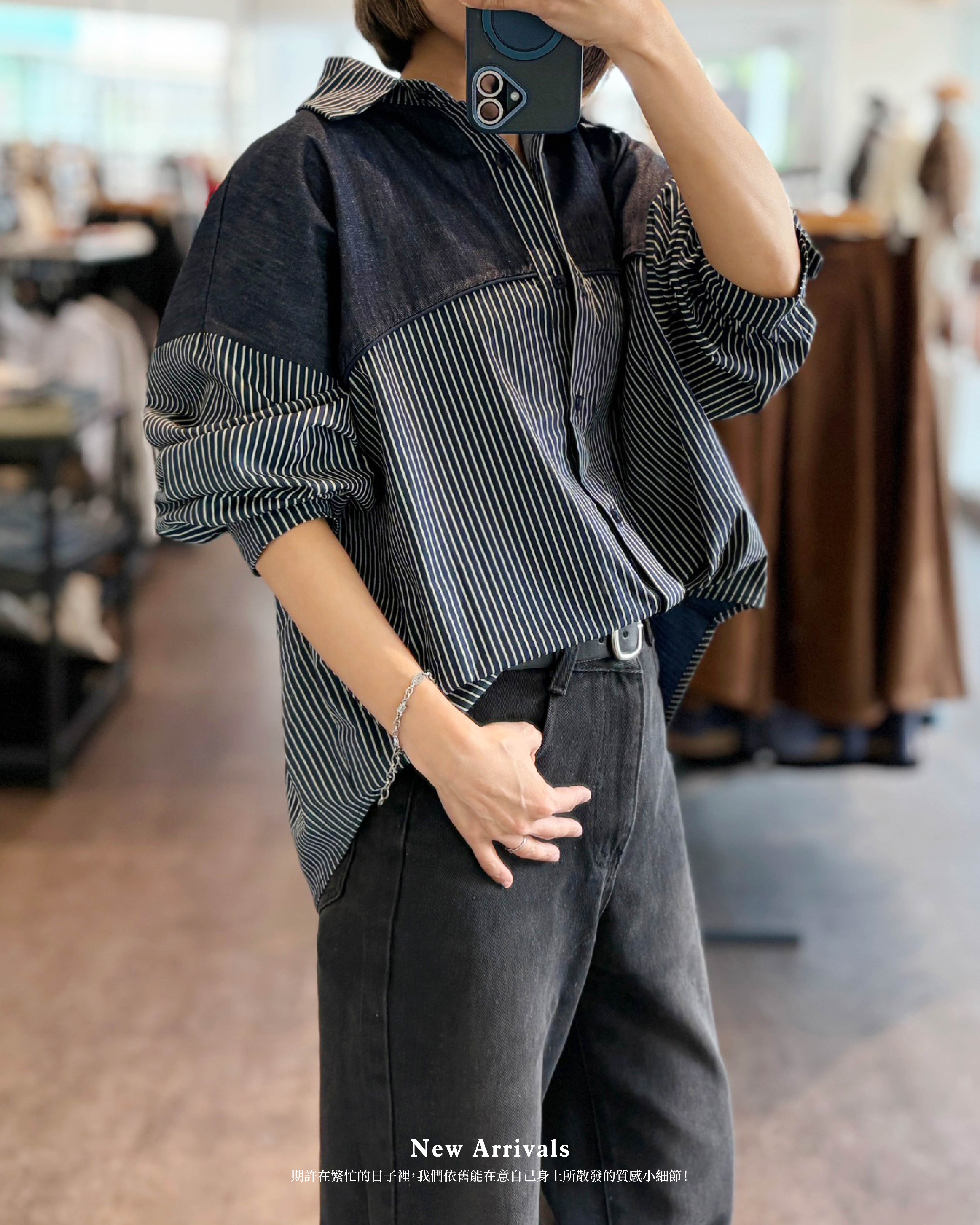丹寧拼直紋襯衣 B152601497015